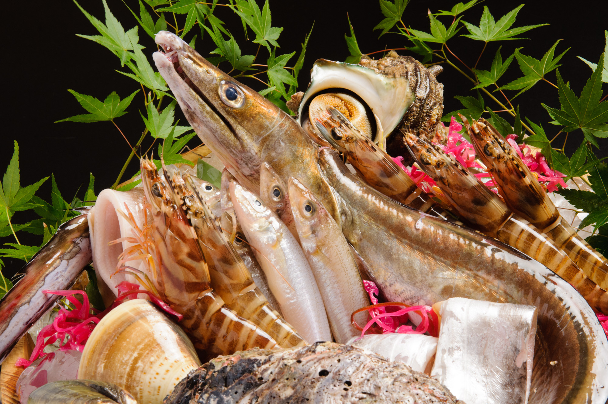 瀬戸内にはシーズン毎に美味しい食材がたくさん!旬の食材を揚げたての天ぷらにして、炊き立てのご飯と一緒に天むすや天丼などの贅沢な一品にします。