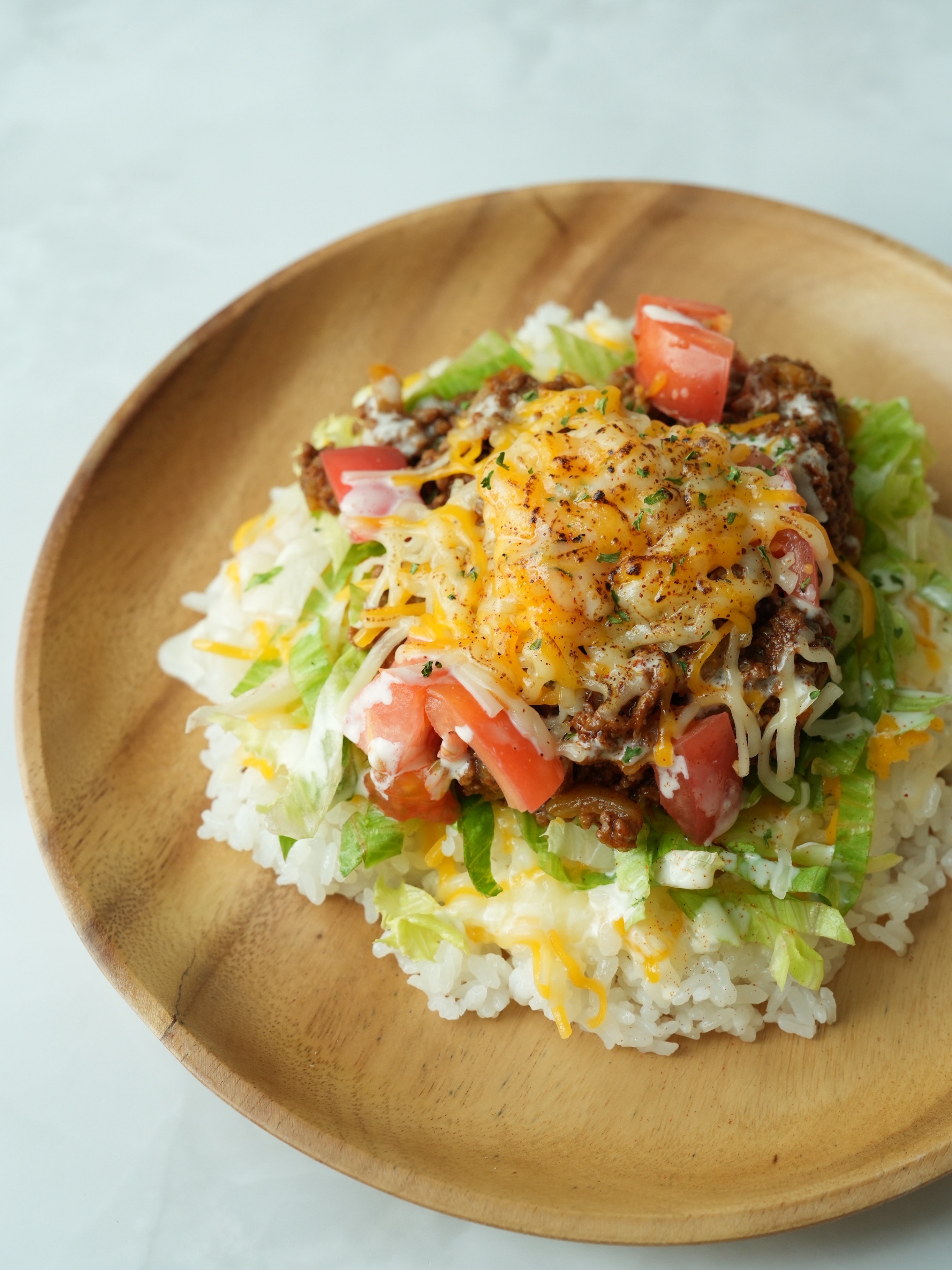 複数のスパイスを使用しながら、辛くない。THE ISLAND KITCHENのオリジナルタコライス。辛い物好きな方にはサルサやハラペーニョなどのトッピングでアレンジ可能です♪何度も試作して完成した国産肉のタコミートが国産の白米にマッチして食欲をそそります。