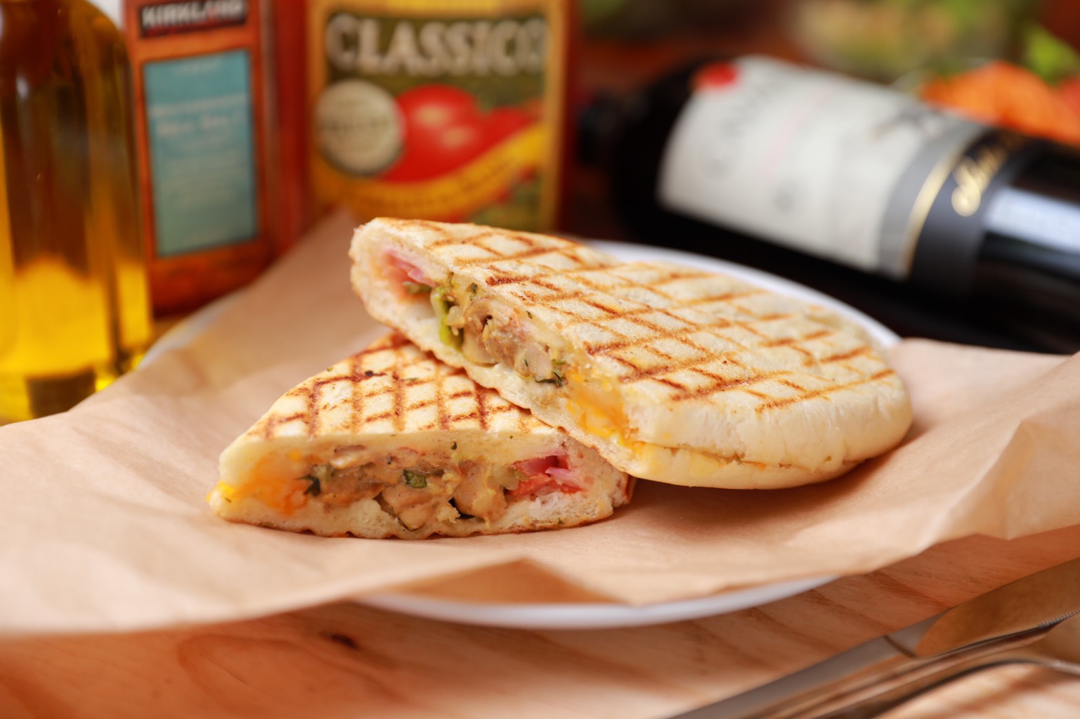 パニーニ、ハンバーガー、アルコール