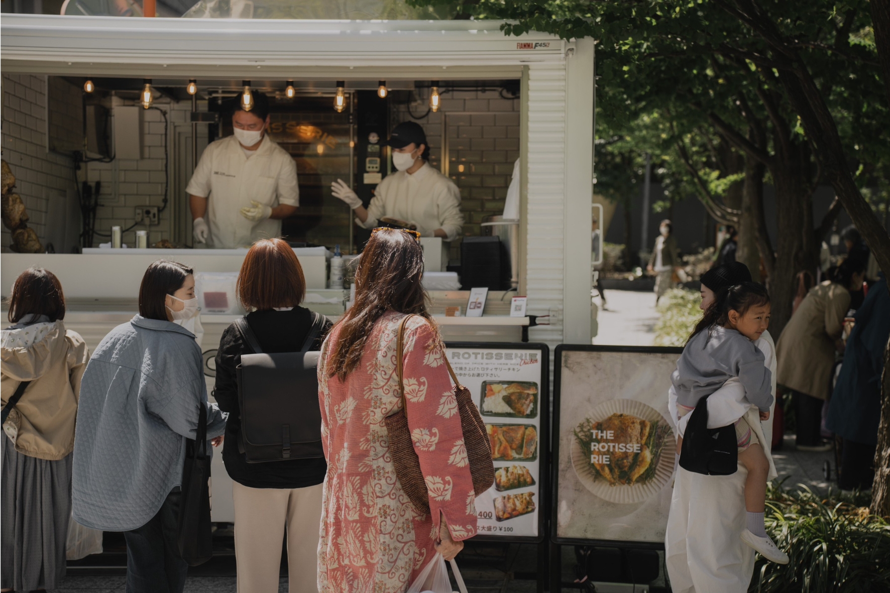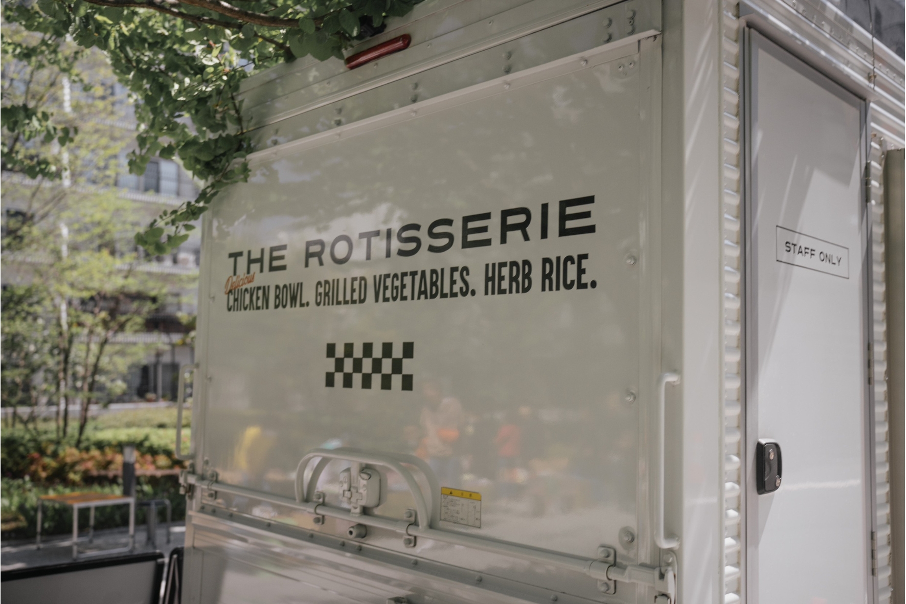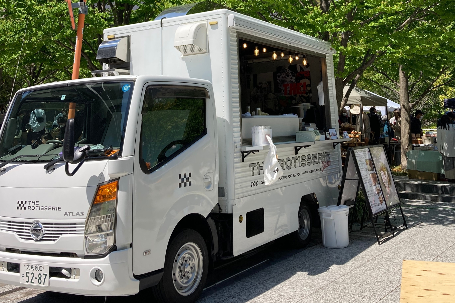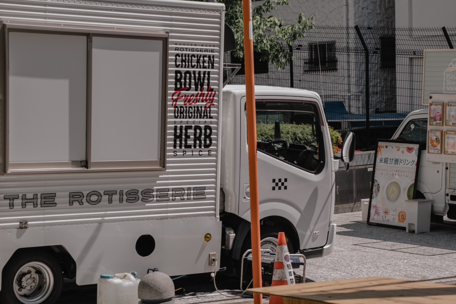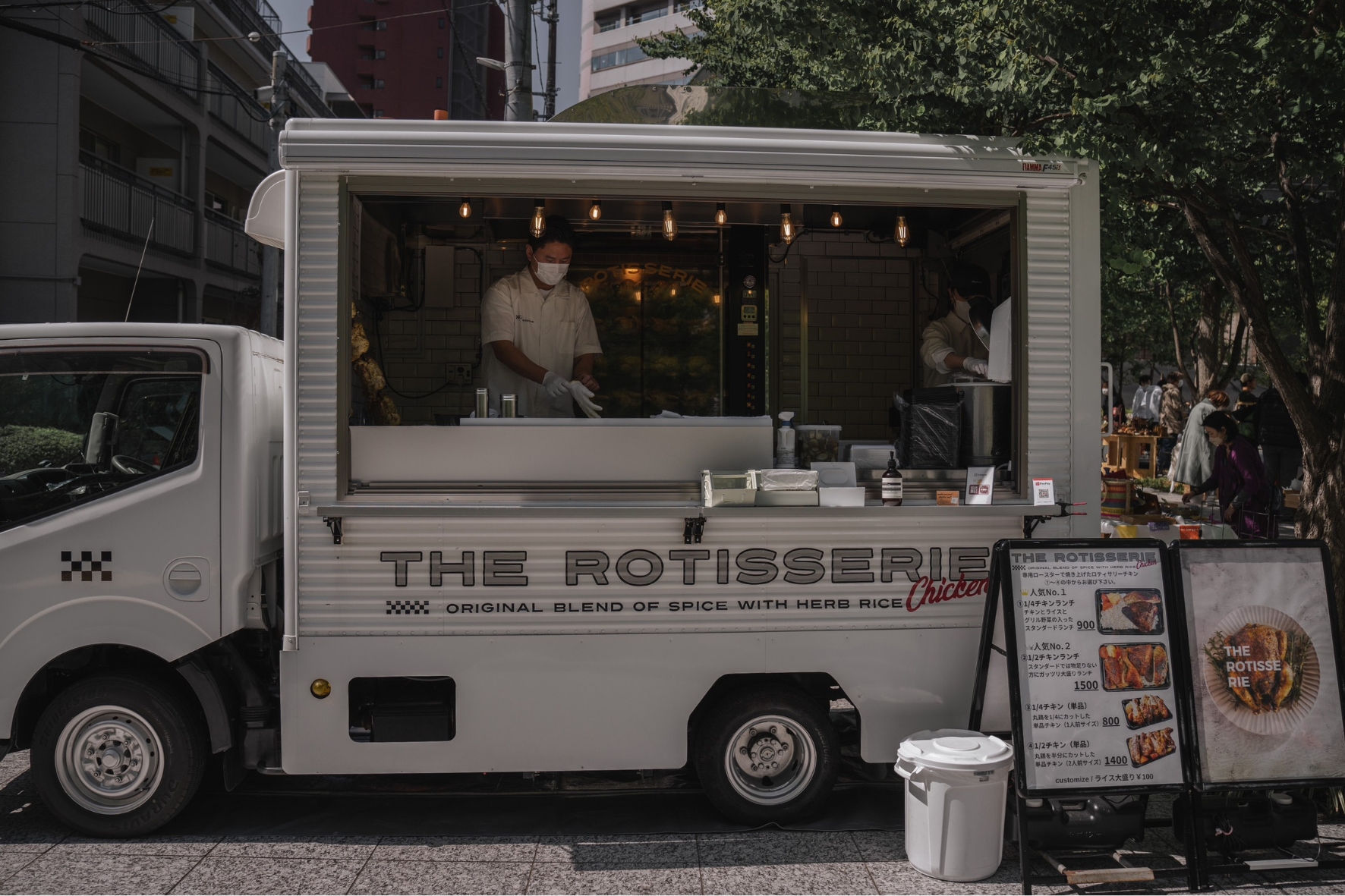 THE ROTISSERIEのキッチンカーは白を基調とした外装なのでおしゃれな現場などでも景観を崩すことがありません。