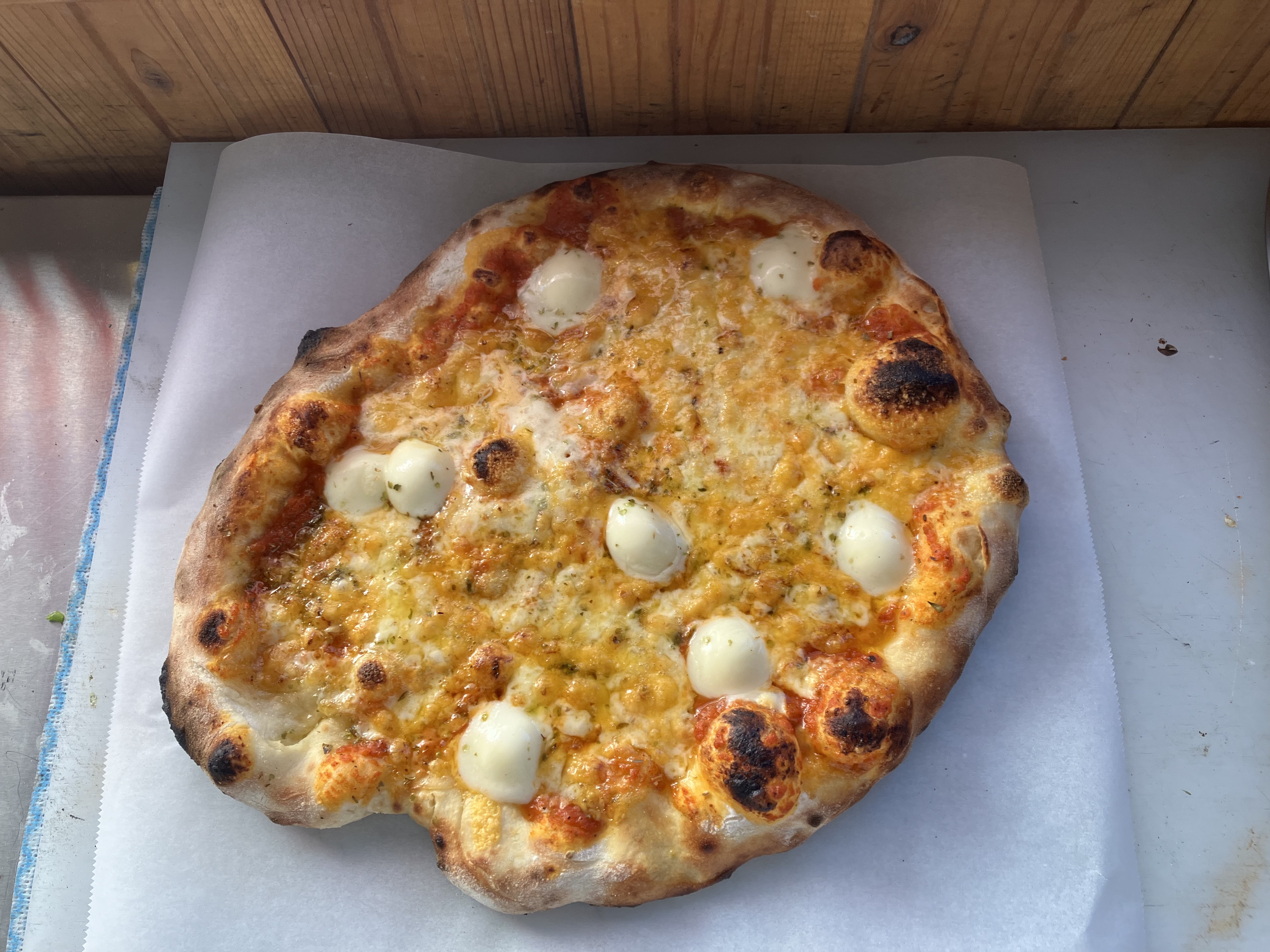 イタリア産の石窯を設置しております。注文を受けてから、焼きます。