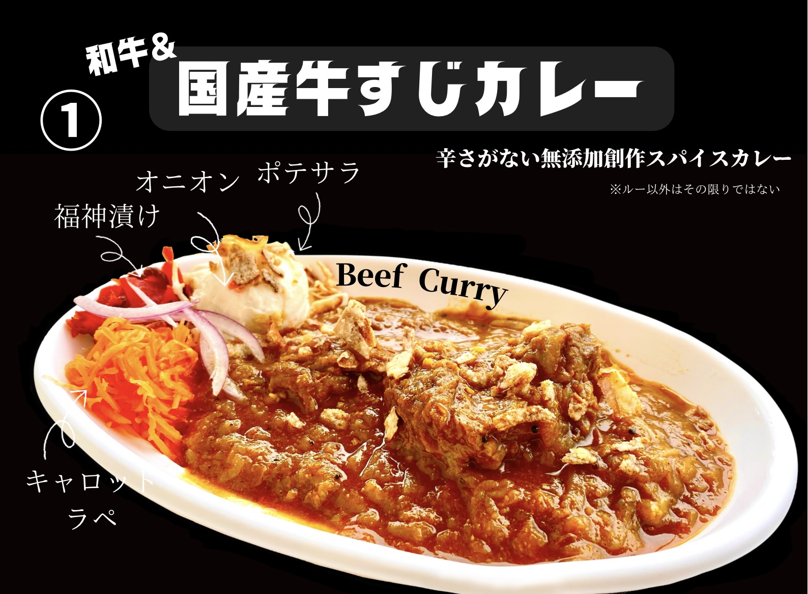カレー、牛すじ飯、坦々飯、唐揚げ、かき氷、焼き芋、フライドポテト