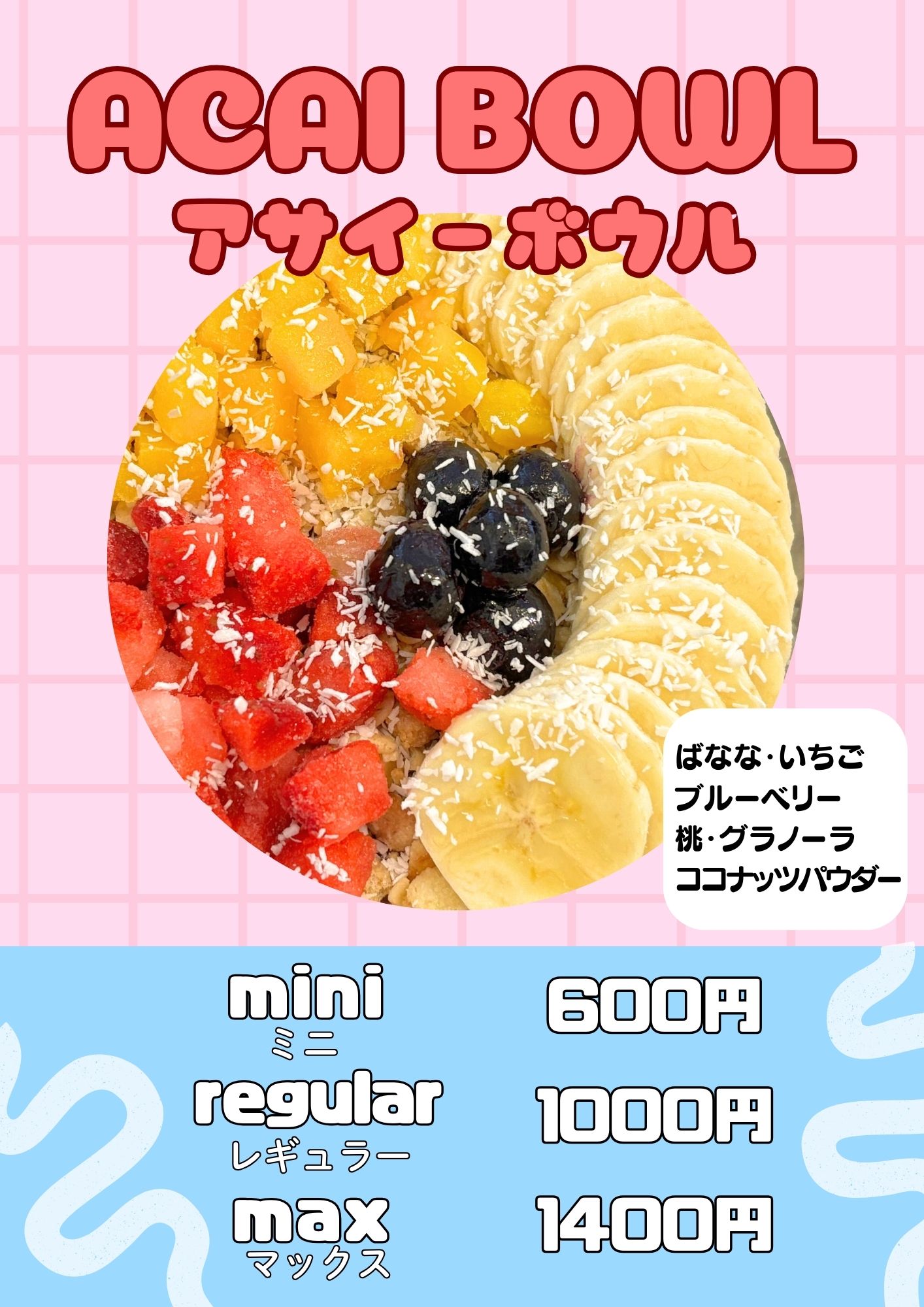 お値段は600円〜と手に取りやすく気軽にアサイーを楽しんでもらえる値段設定にしております。
