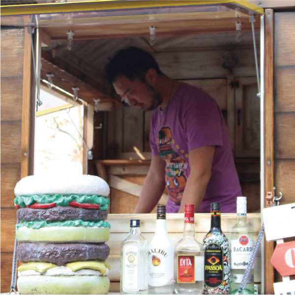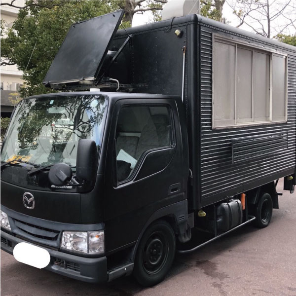 軽トラックタイプのキッチンカーは背面からも販売が可能。路地裏などの限られたスペースでも出店が可能なので空きスペースを活用したいオーナーさんにもオススメです!
