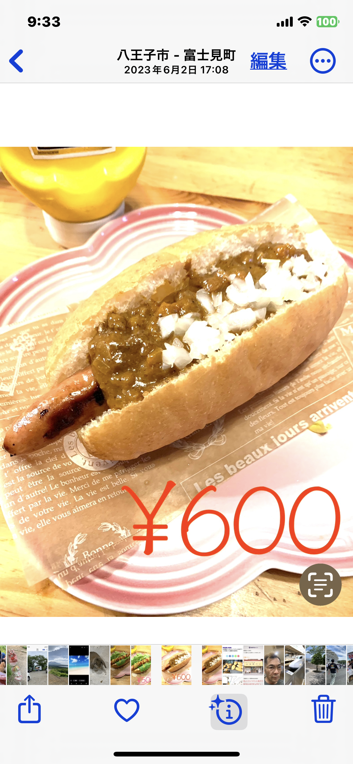 ホットドッグ。オニオン、レリッシュもついててんこ盛り!