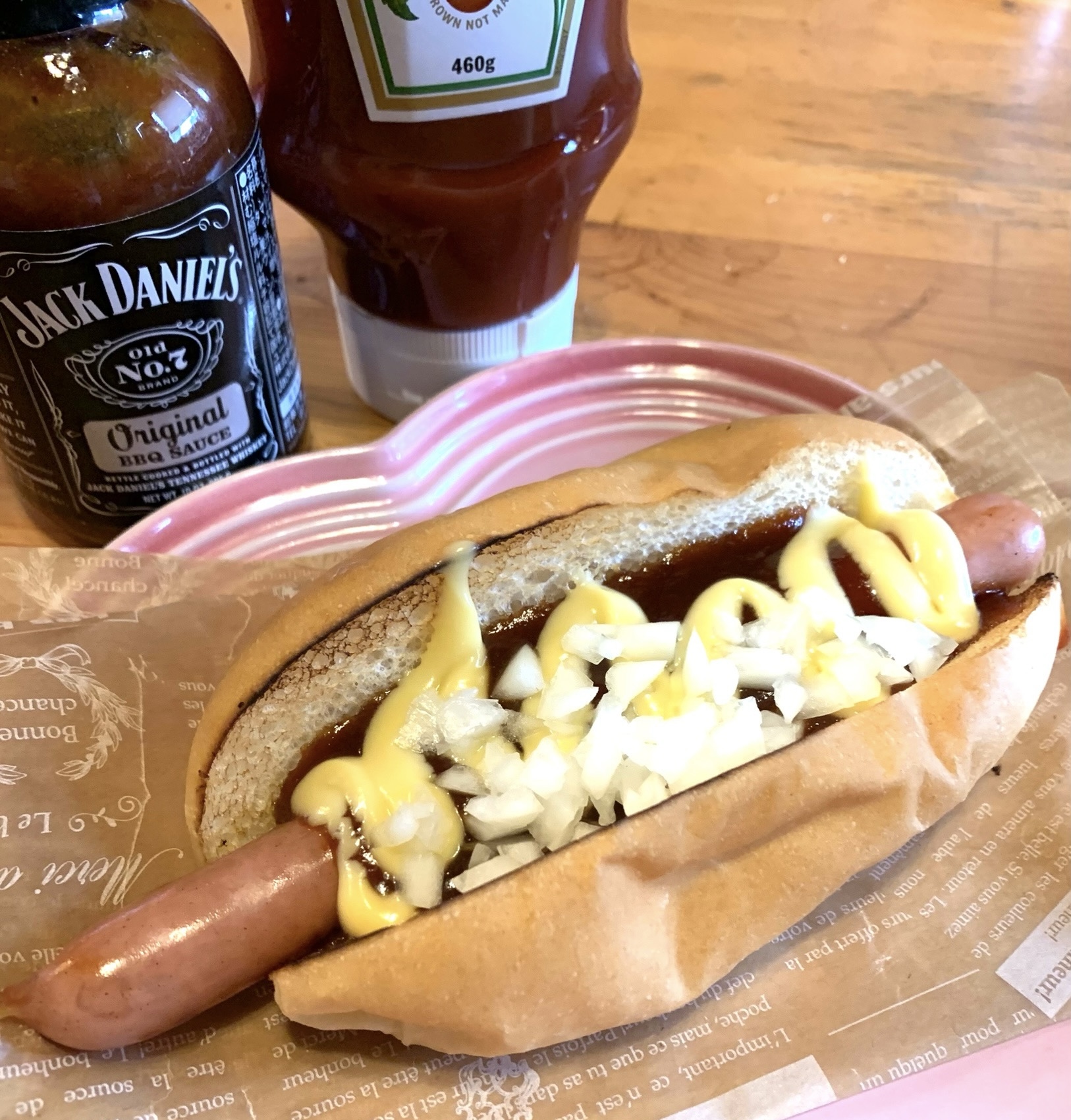 BBQドッグはJack Danielの特別ソースを使っています。リピーター続出 夏はカレー、サルサドッグ