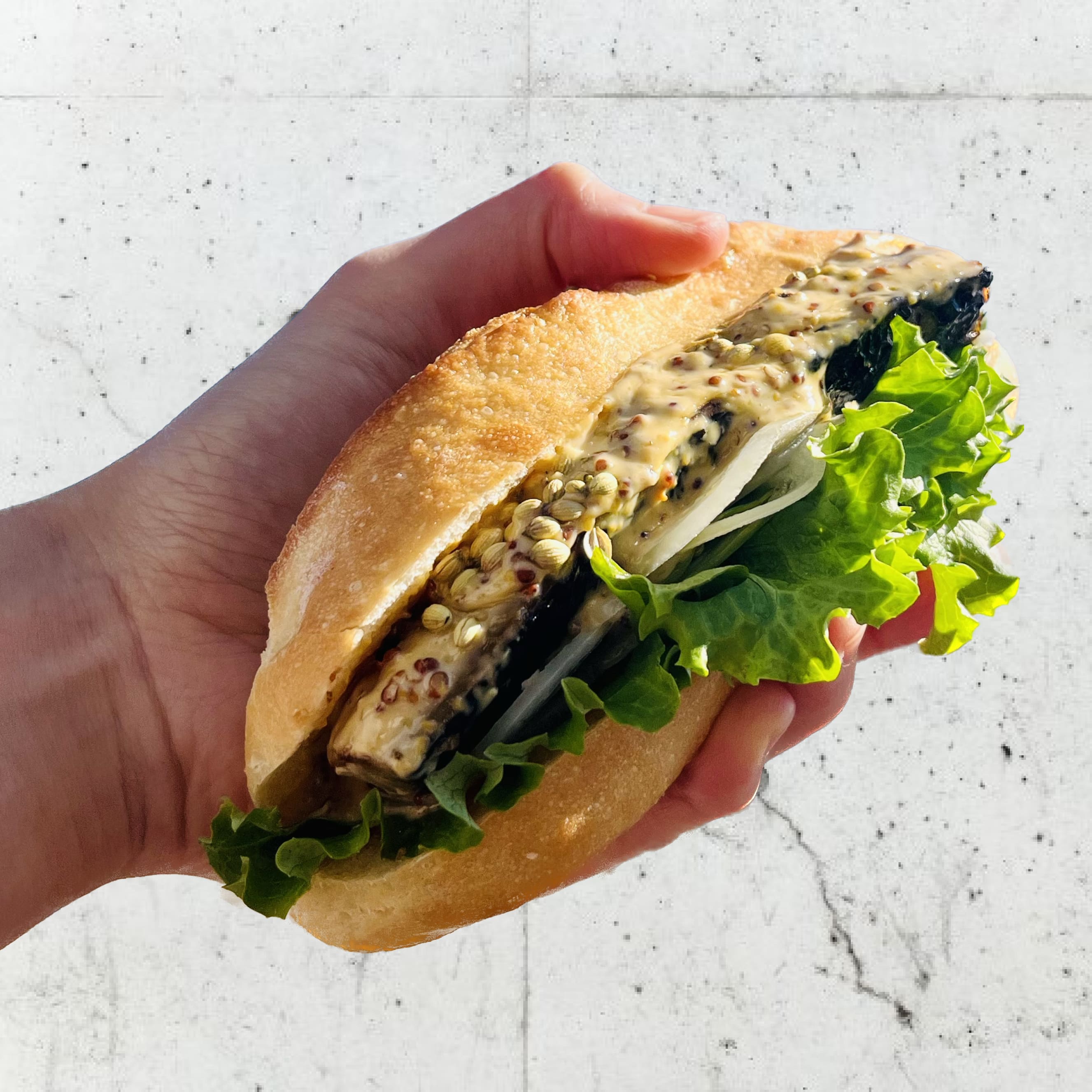 そのまま食べても美味しいソフトフランスにステーキのようなサイズのサバがドーンと入っており、ジューシー&スパイシーでお腹も満たせるガッツリ系サバサンドです!