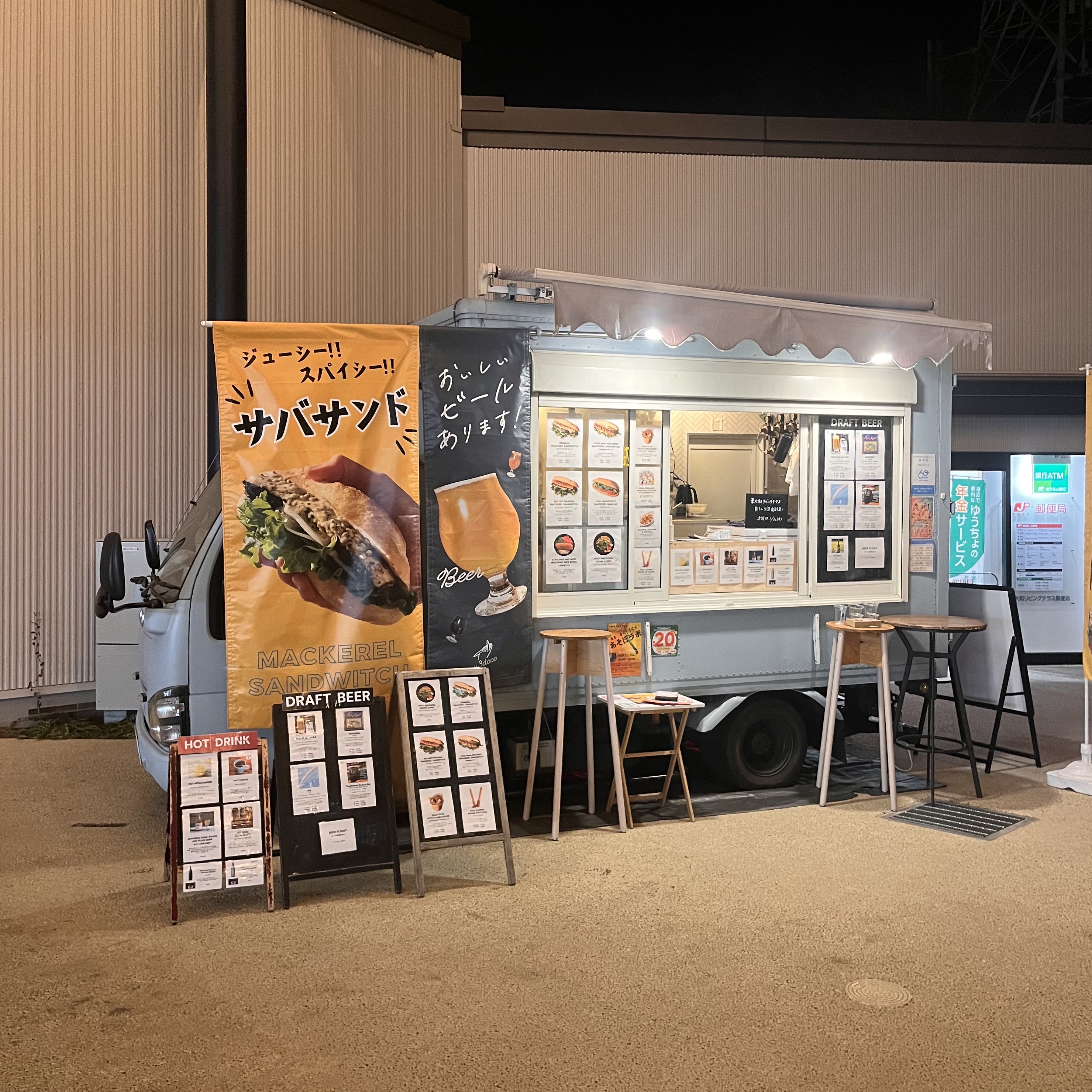 ジューシー&スパイシーなサバサンドと店主厳選ドラフトクラフトビールのキッチンカーu3doco(うみどこ)です。