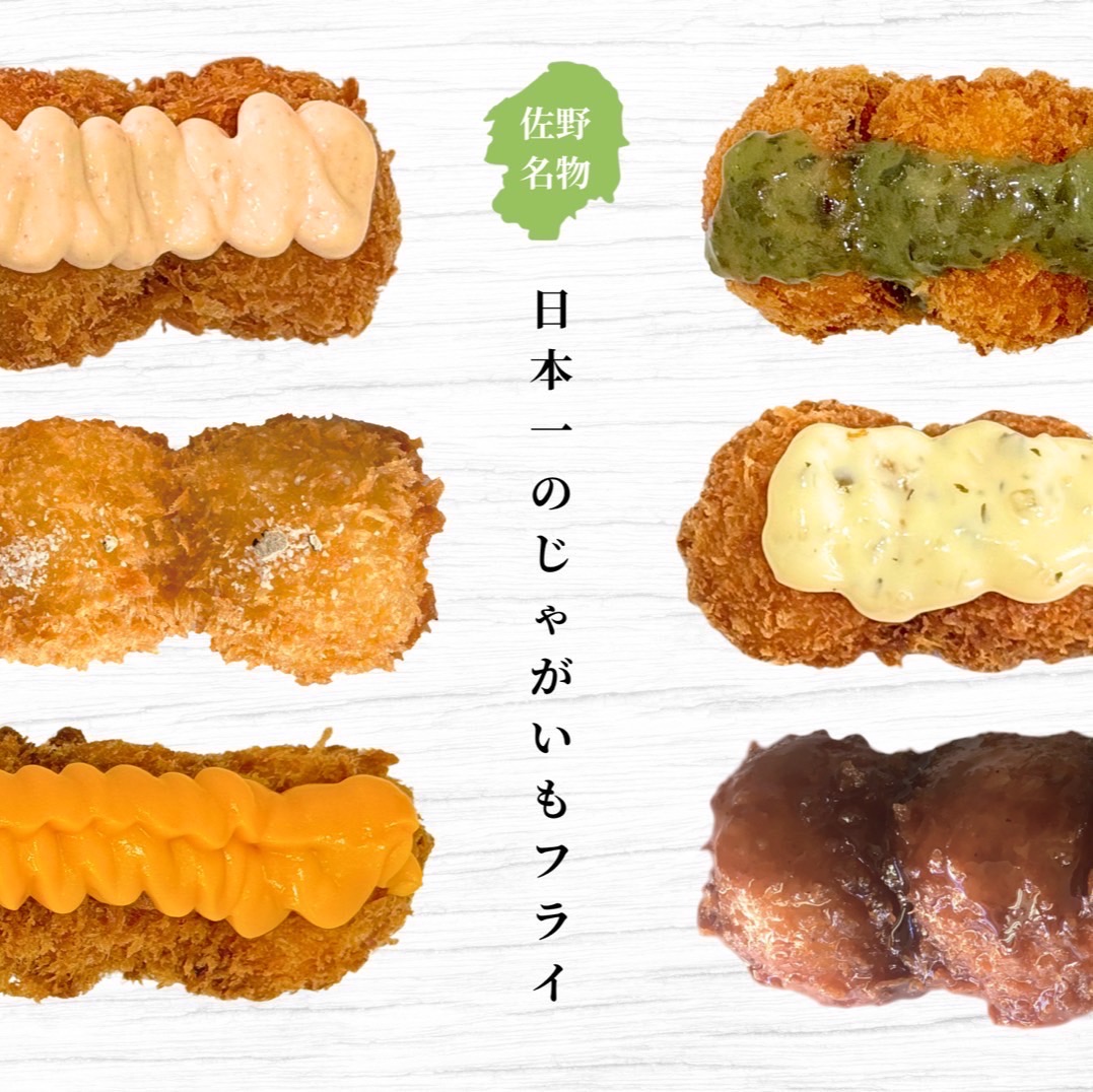 じゃがいもフライ、ルイジアナチキン、ルイジアナチキンサンド、かき氷、ポテトチュロス、たまこんにゃく、ごぼうの唐揚げ、おとうふドーナツ、ドリンク、たこ焼き