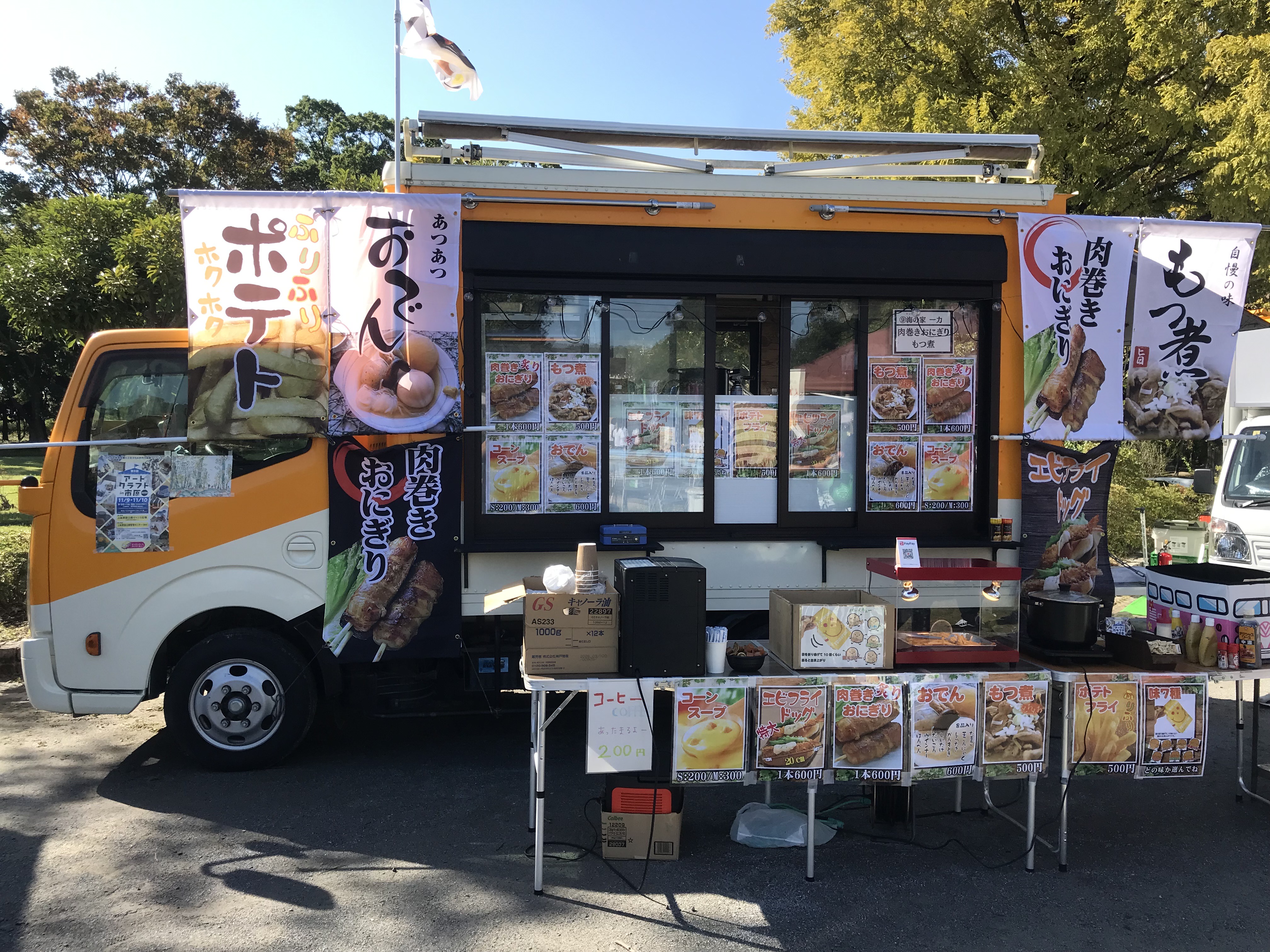 肉巻きおにぎり、カレー、鳥から、フランクフルト、かき氷、焼きそば、ポテトフライ、モツ煮、イカ焼き、他