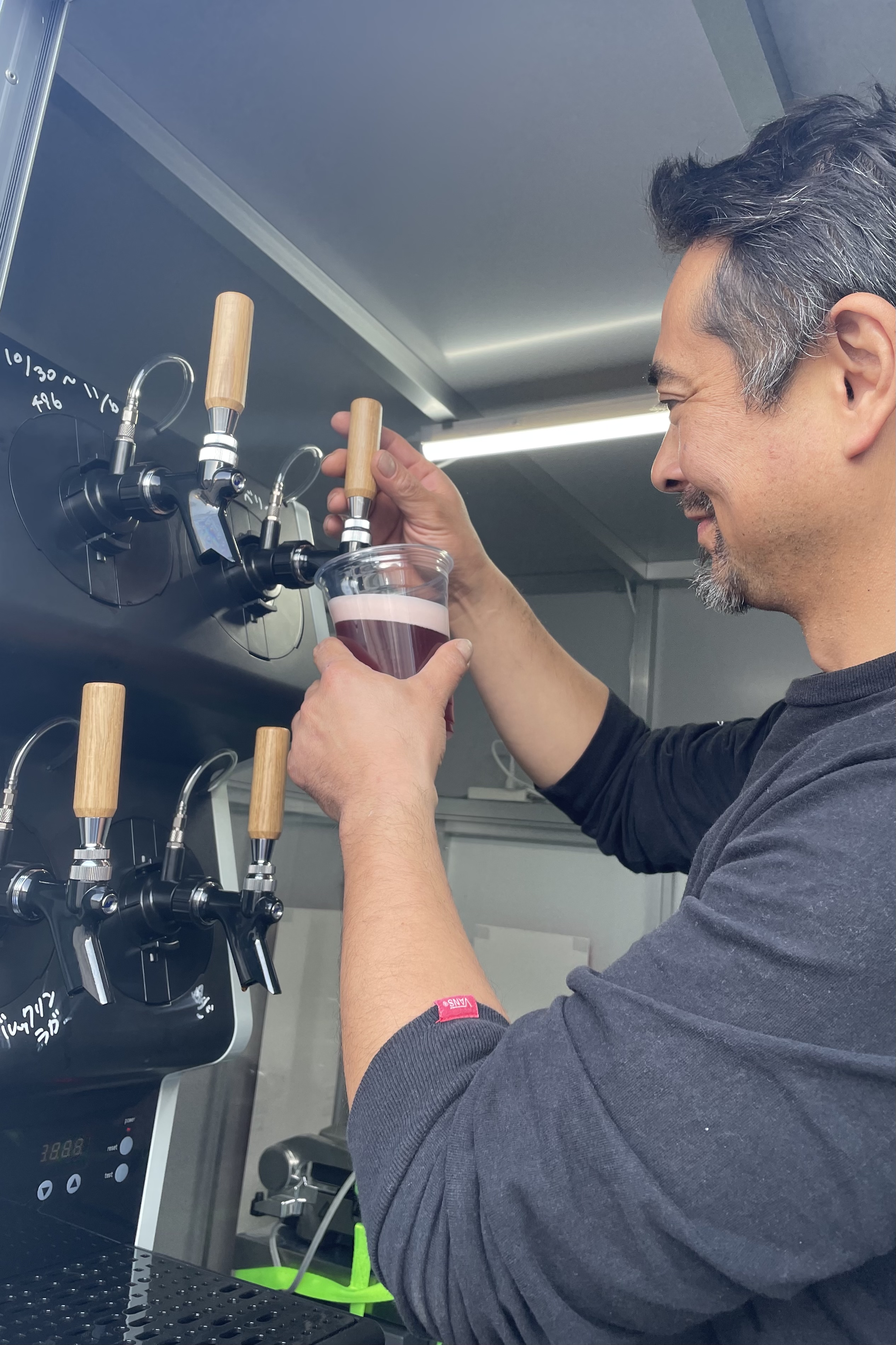 ビールサーバーを車載して、常時4種類の生のクラフトビールを提供しています。