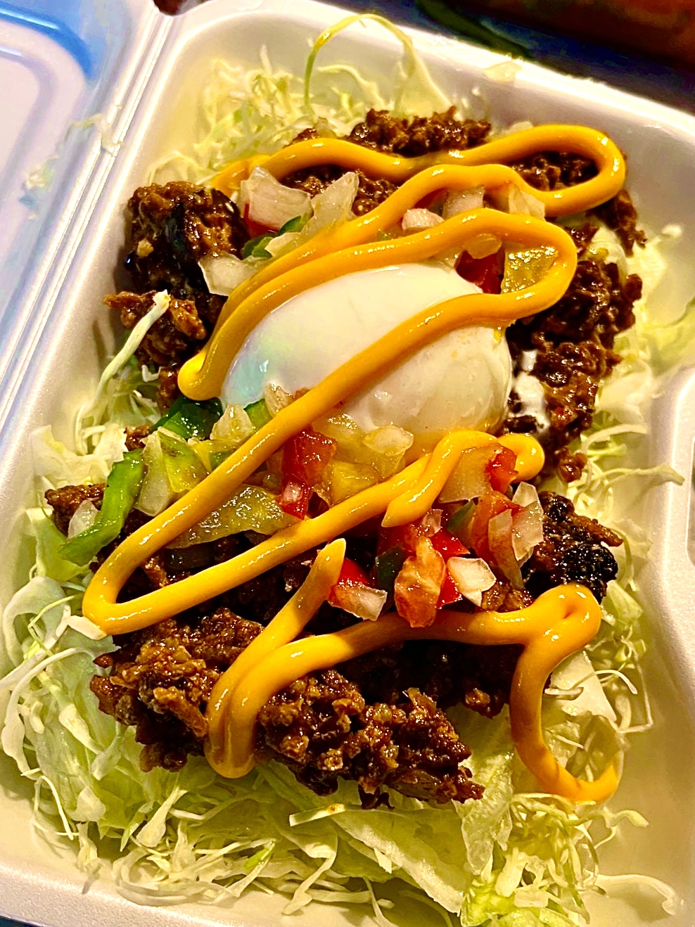 ステーキライス、タコライス、タコス、生クラフトビール4種、その他お菓子など