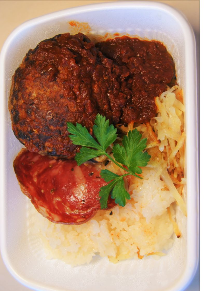 使用しているメインのお肉は200g以上!そこに付け合わせのお野菜やお肉、お米が入って総重量は大盛で約450gにも!圧倒的コスパの良さ!もちろん小盛やお野菜多めなど、アレンジも承ります!