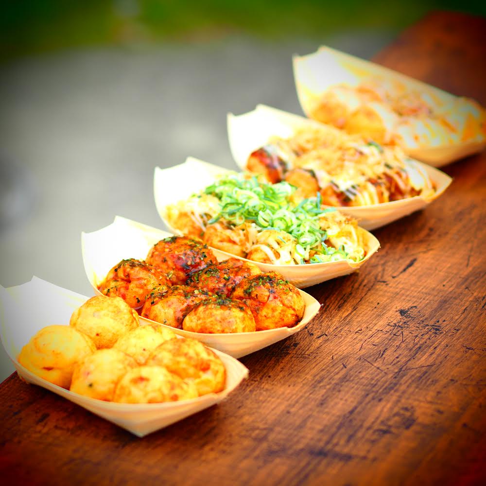 たこ焼き、肉巻きおにぎり、ドリンク、アルコール、わらび餅、夏季かき氷、