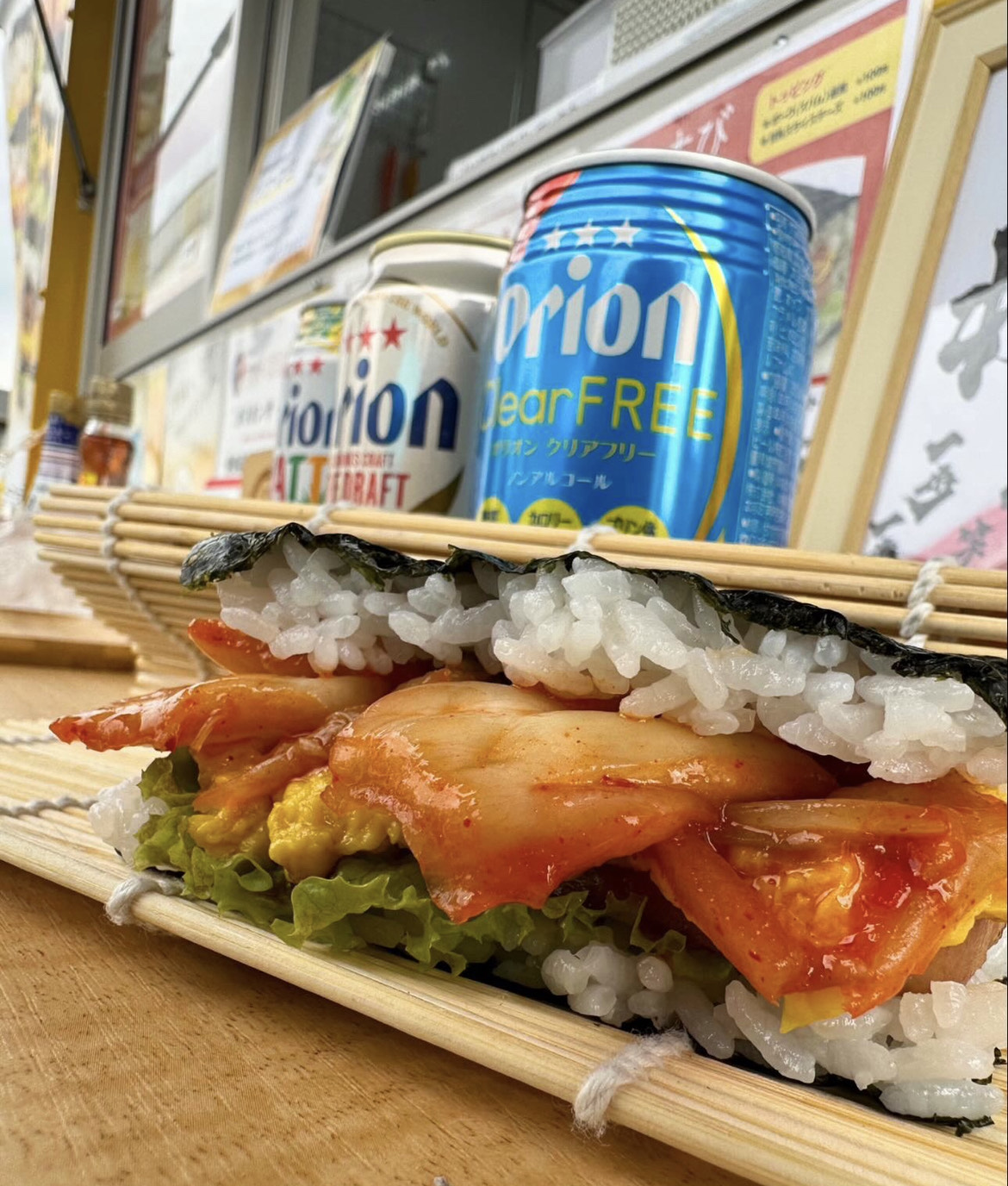 たまごを使わないポークたまごおむすび(5種)、ポーたま丼、粗挽きフランク、さんぴん茶、南国系ドリンク(3種)、オリオンビール(缶)、オリオンクリアフリー(ノンアル缶)、各種酎ハイ