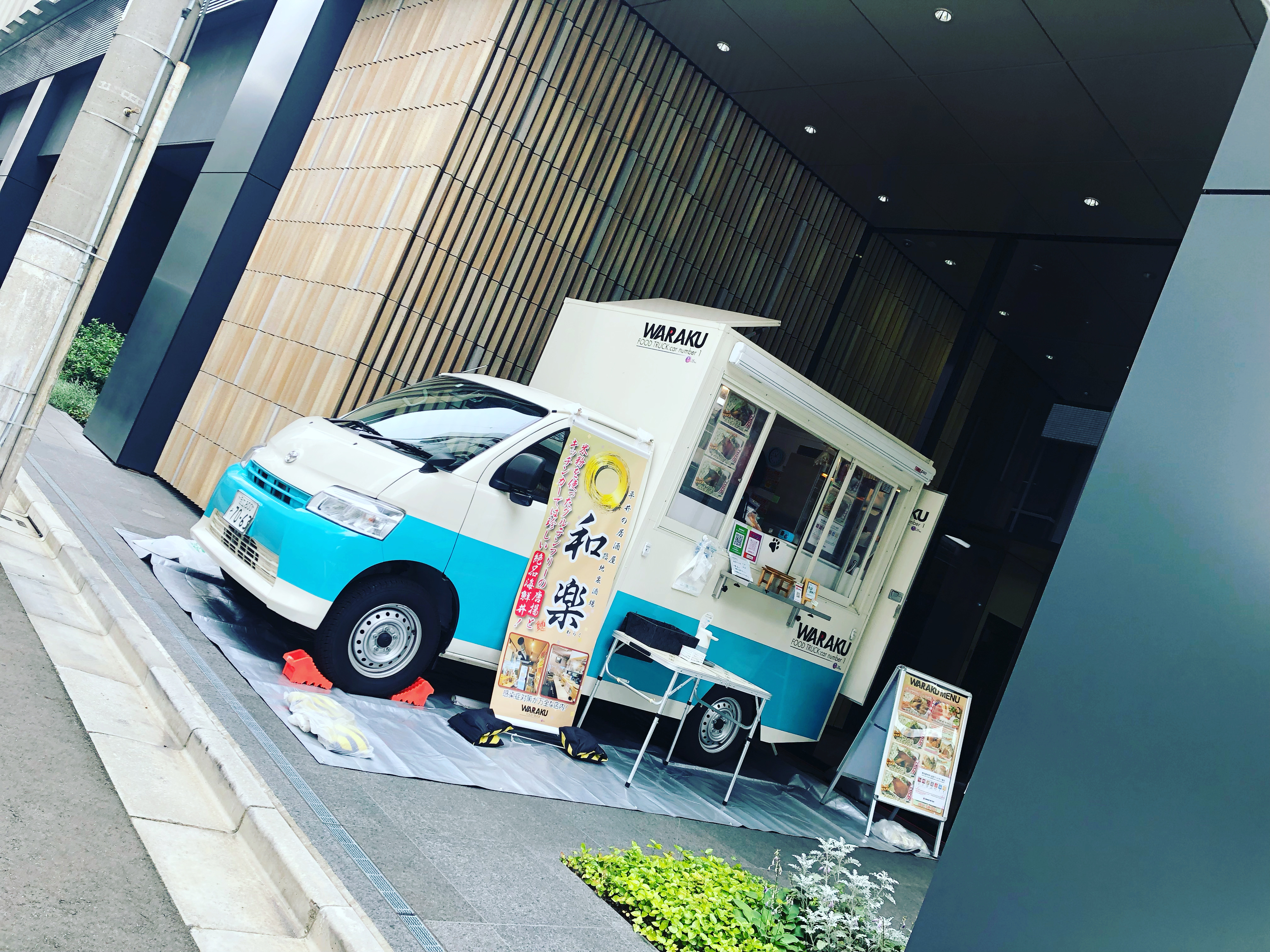 WARAKUのキッチンカーはオフィス街でもイベントでも景観を損なうことなくご利用頂けます。店舗でも人気のメニューを皆様にお届けします。