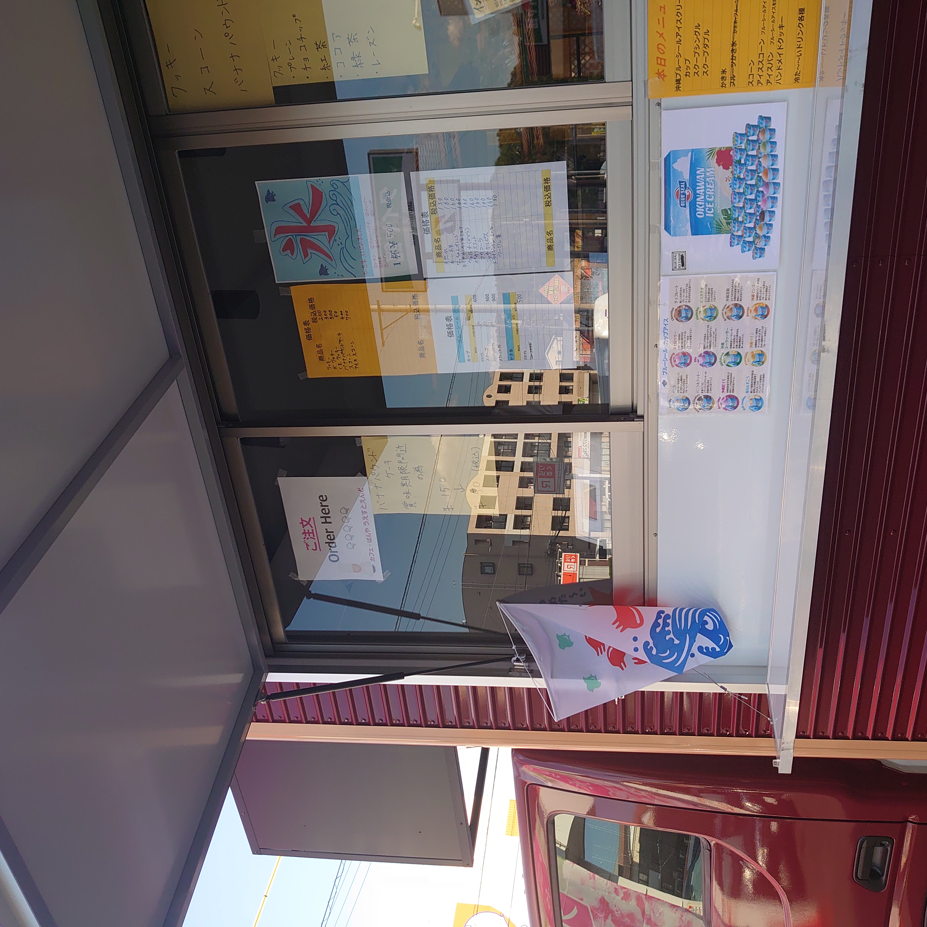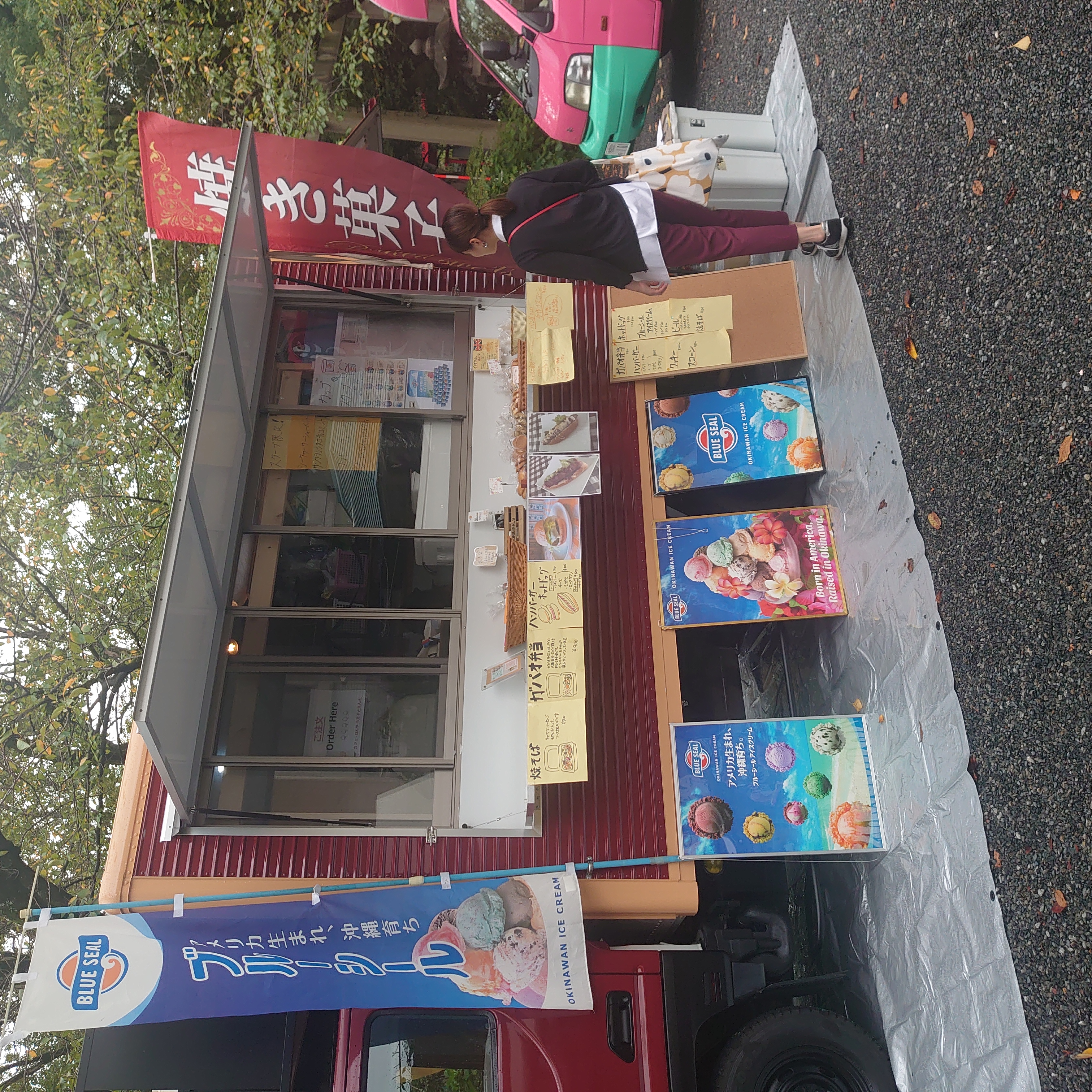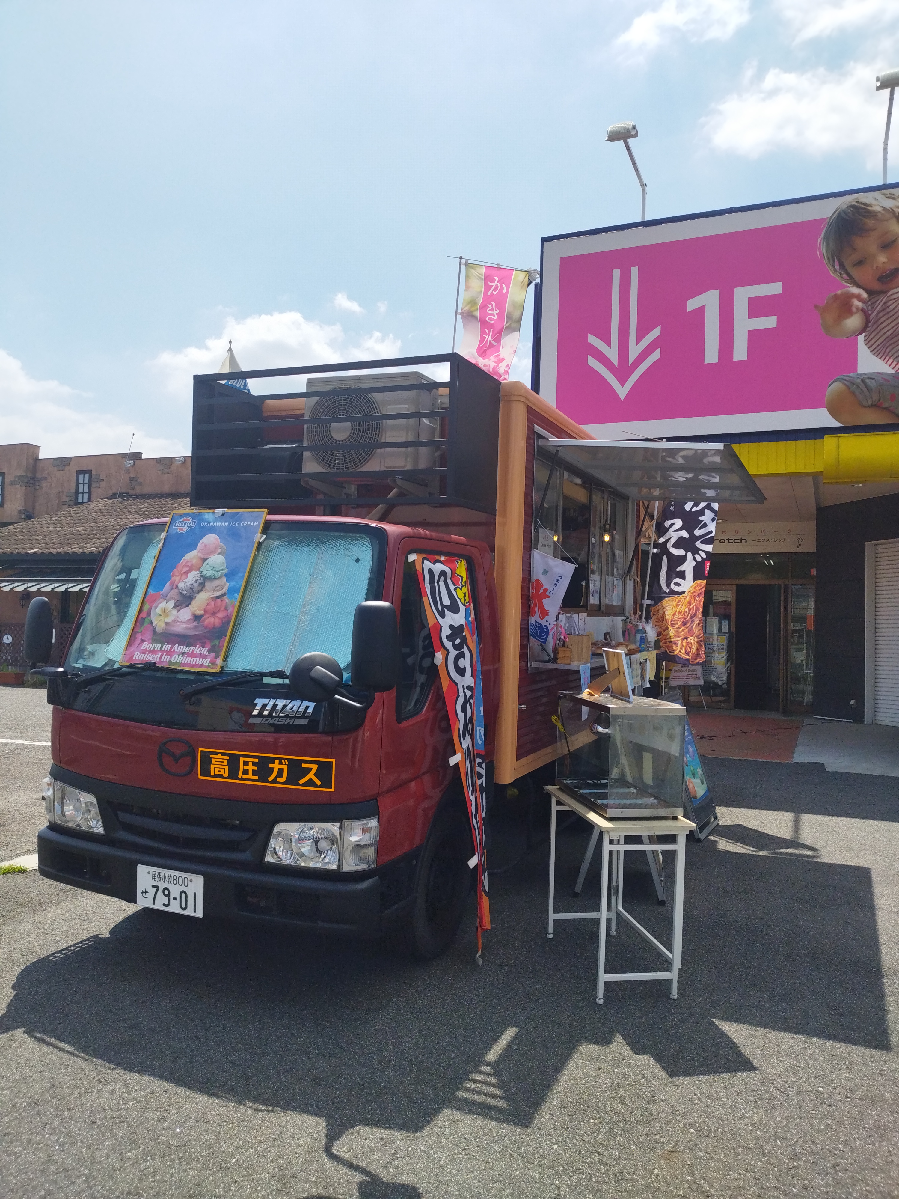 沖縄ブルーシールアイスクリーム、熊本いきなり団子、焼きそば、パン、かき氷、ハンバーガー、アメリカンサンドなど