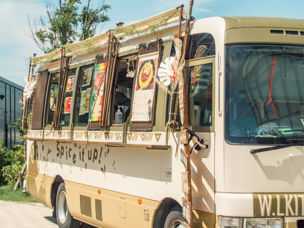 WOODLAND(ウッドランド)のキッチンカーは元々は幼稚園児の送迎用に使われていたバスでした。そのバスを改造し、大型フェスやイベントにぴったりの楽しげなペイントを加え、イメージチェンジ。側面に書かれた『Spice it up』は、『日常(物事)をより面白いものにしよう』という意味が込められています。WOODLAND(ウッドランド)を呼べばどんなイベントも盛り上がること間違いなしです!