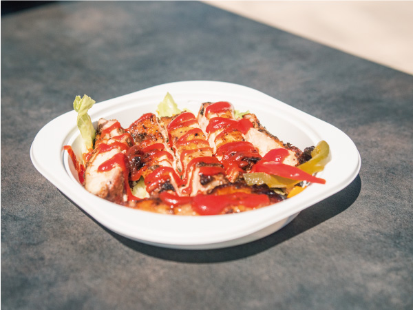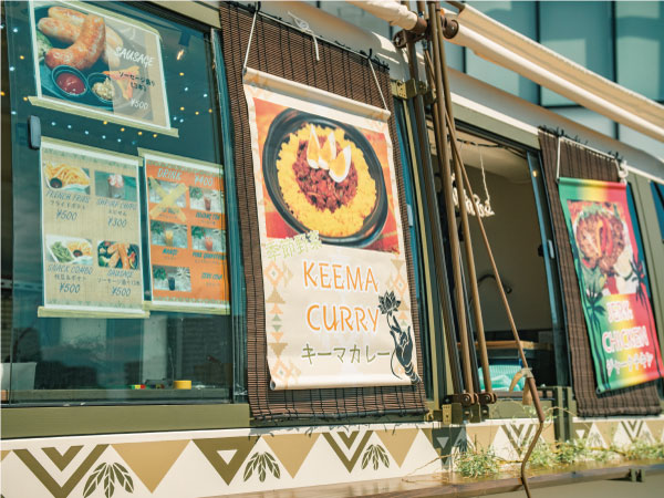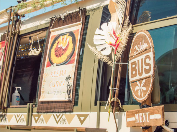 バスを改造しているので、キッチン部分も広々。そのおかげで品数に縛られず、作りたい料理を多く作ることが可能に。メイン料理はジャークチキンですが、その他にもタイのグリーンカレーや、ソーセージ、ポテト、暑い時期にはかき氷など豊富な品数で訪れる人を楽しませます。こんな料理を提供して欲しいけどできる?なんて相談もどしどしお待ちしています!