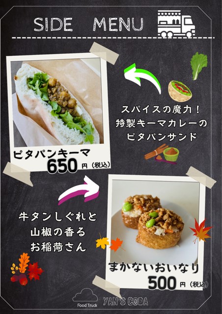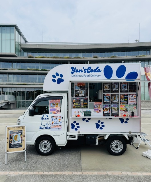 Yan’sCoda のキッチンカーはシンプルなデザインなのでどんなイベント、シーンにも雰囲気を壊さず主点が可能です。また軽トラックなので限られたスペースでの出店が可能です。