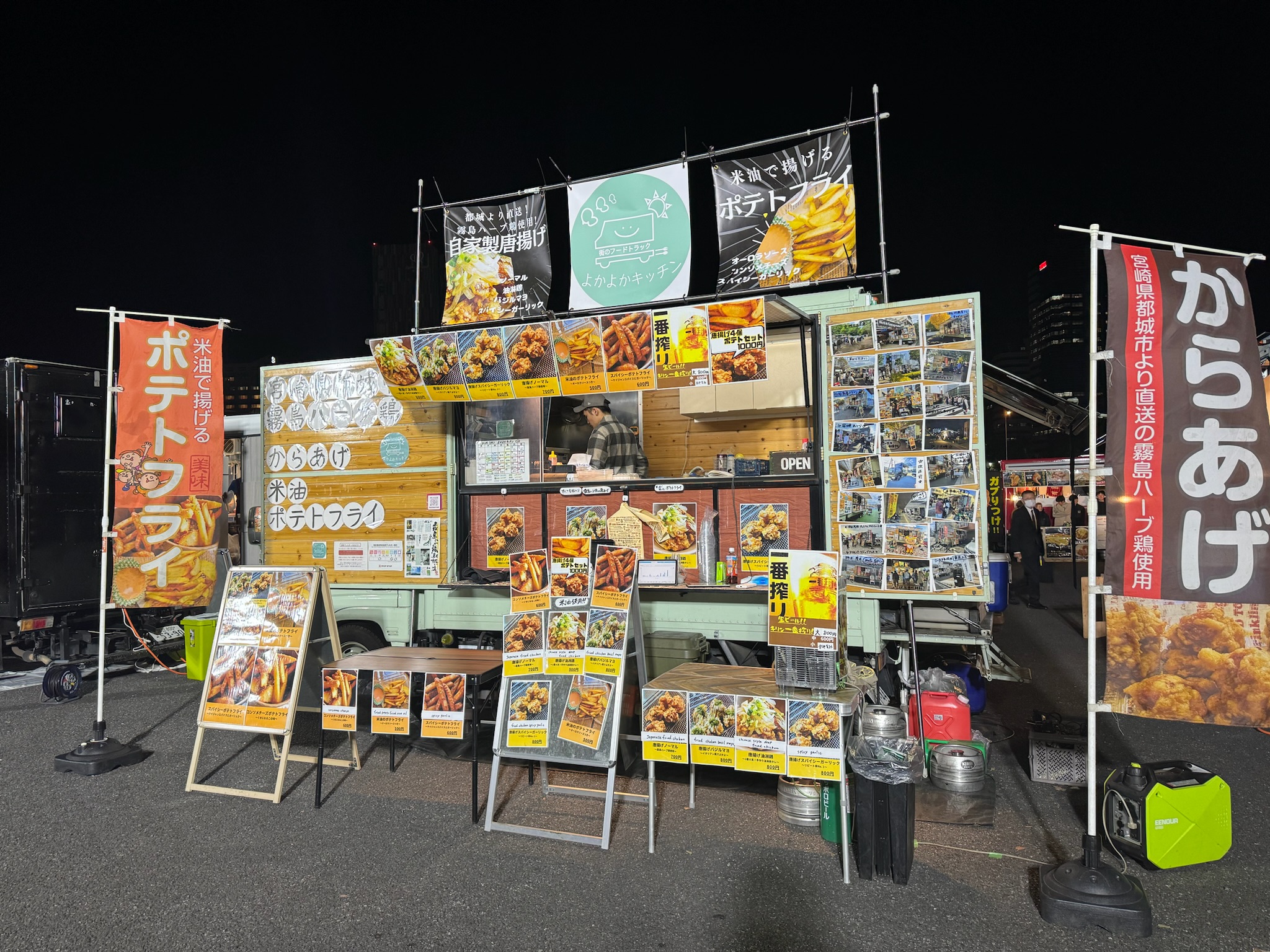 宮崎県都城市より直送の霧島ハーブ鶏を使用し、自家製レシピの秘伝タレにつけ込んだ唐揚げと米油で揚げるポテトフライのお店です!