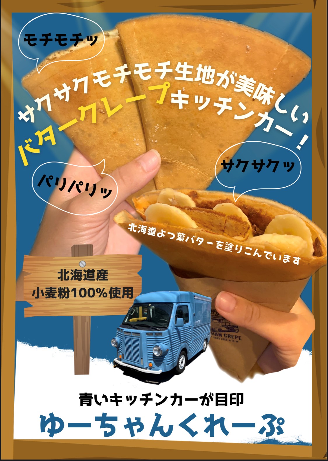 北海道産よつ葉バターを生地にたっぷり塗り込んだ、味わい深いクレープです。