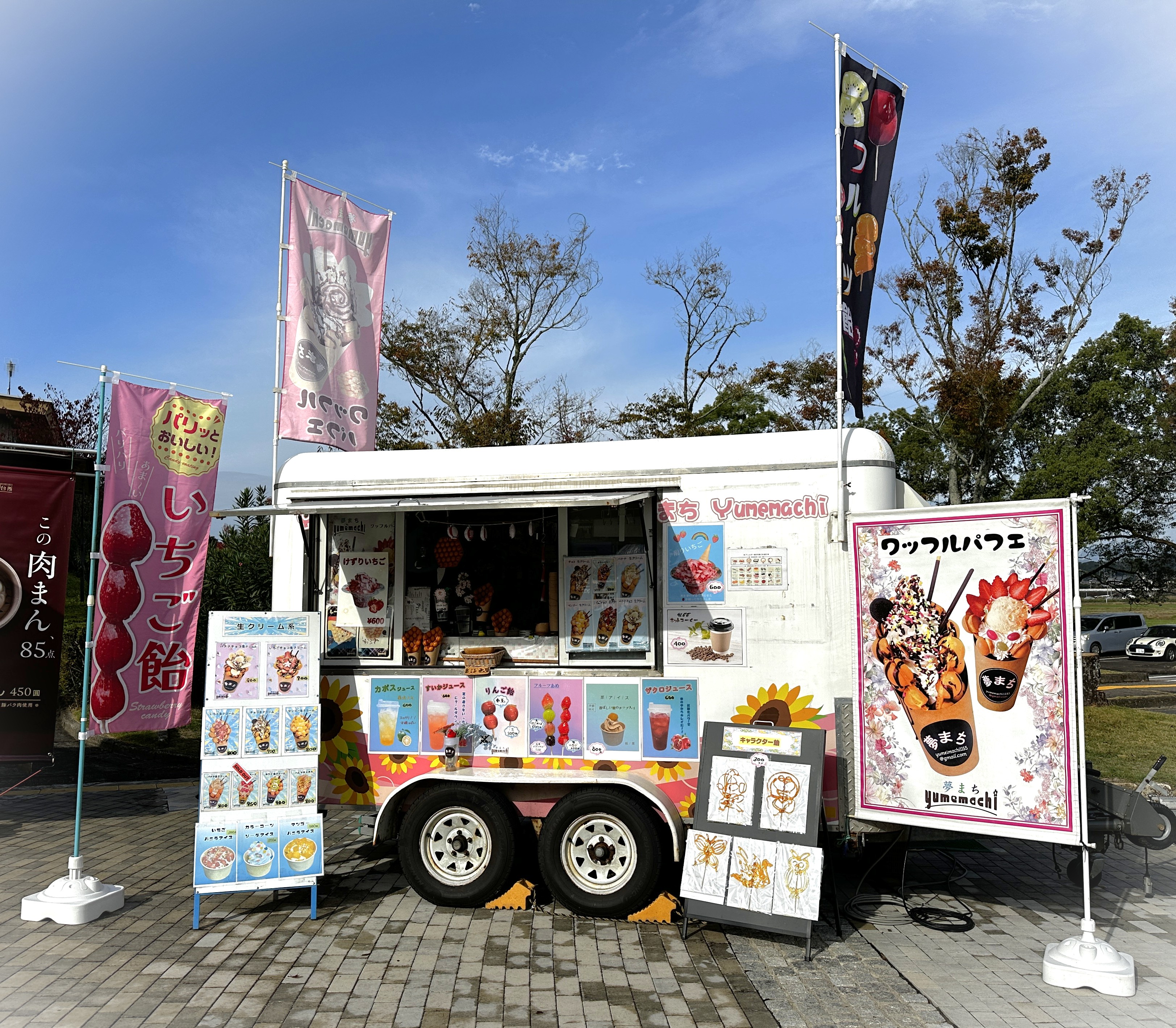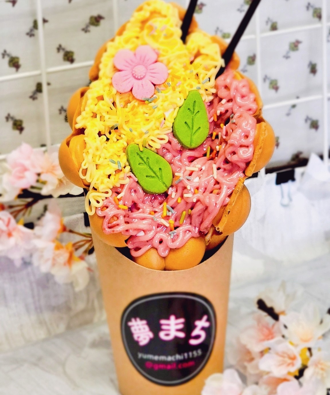 ワッフルパフェフルーツ飴ドリンク