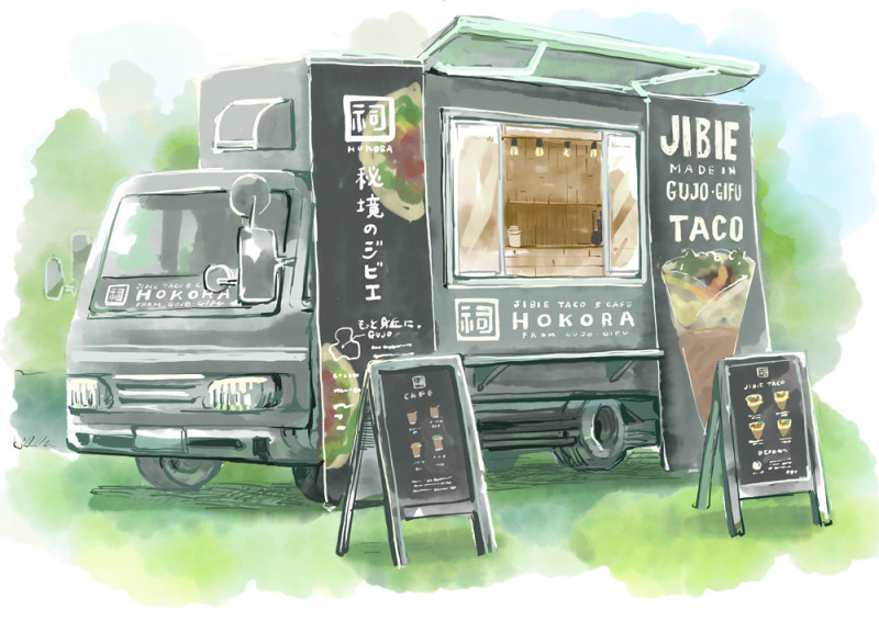 油そば、近江牛肉盛りバーガー、パフェ、たい焼き、トルネードポテト、近江牛ライス、ビビンバ、炭酸ジュース、ホットドリンク