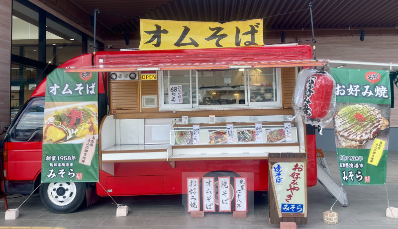 焼きそば、オムそば、お好み焼き、カニ雑炊、カニ寿司、焼きイカなど