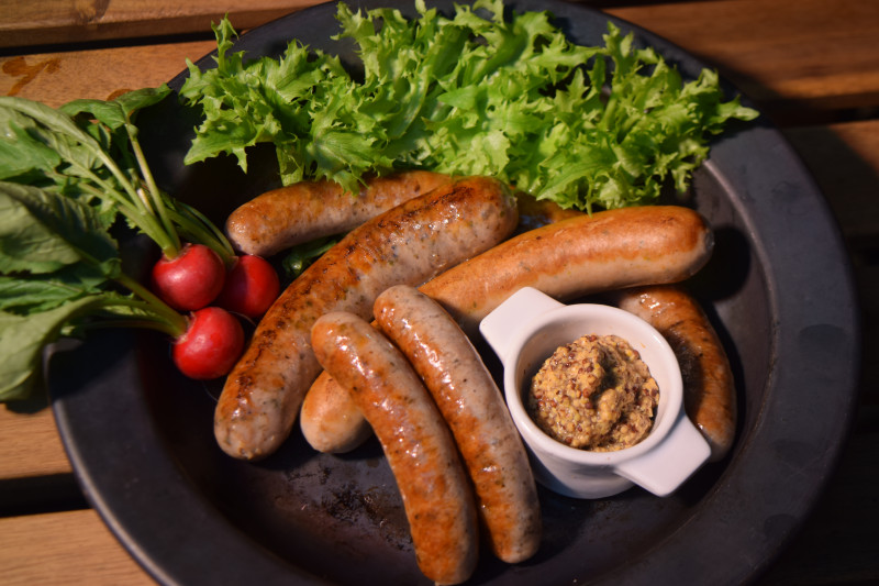 ドイツ人手作りの無添加ソーセージ、ソーセージドッグ、レバーパテ、サラミ、ドイツビール