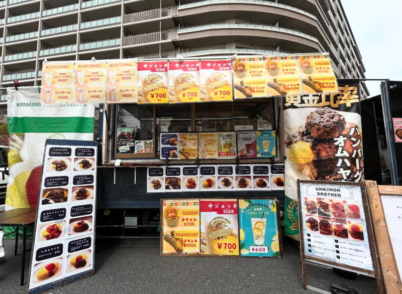 クレープ/かき氷/ドリンク類/わたあめ/ふりふりポテト/ロングポテト/チーズビーフサンド/ホットドッグ/焼きそば/牛串/けずりいちご/アイス/からあげ/チュロス/餃子ドッグ/肉巻きおにぎり