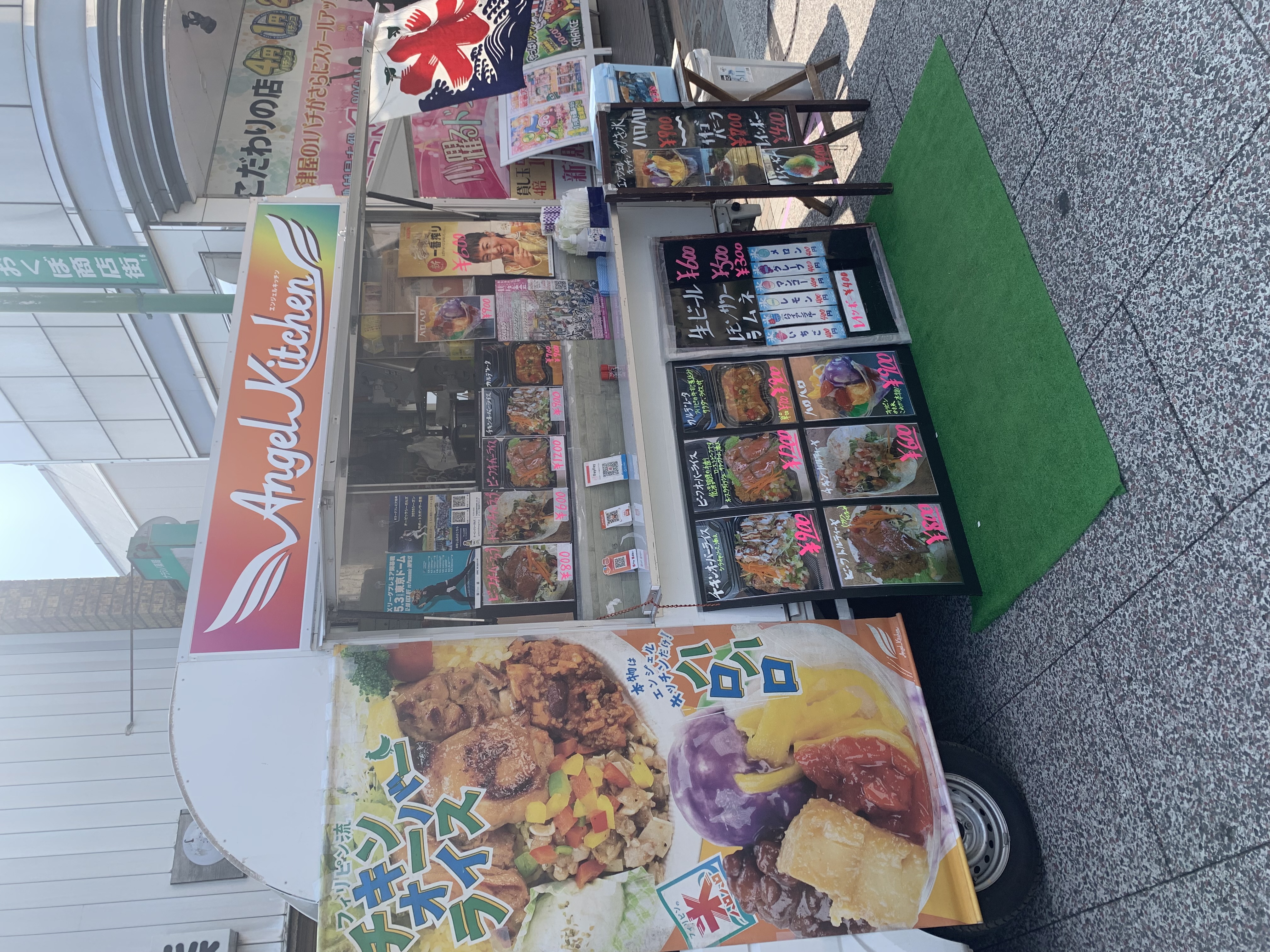 チキンオーバーライス、ビーフオーバーライス、トルティーヤラップサンド、ハロハロ他かき氷、ソフトドリンク、生ビール他