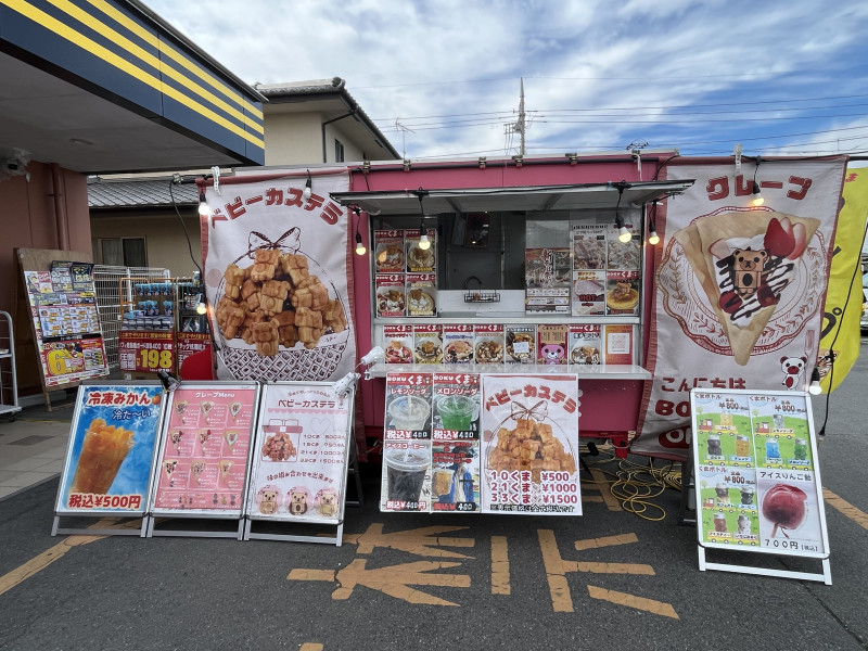 クレープ、ベビーカステラ、ドリンク