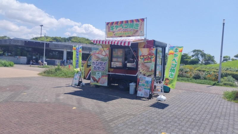 じゃがいもフライ、ルイジアナチキン、ルイジアナチキンサンド、かき氷、ポテトチュロス、たまこんにゃく、ごぼうの唐揚げ、おとうふドーナツ、ドリンク、たこ焼き