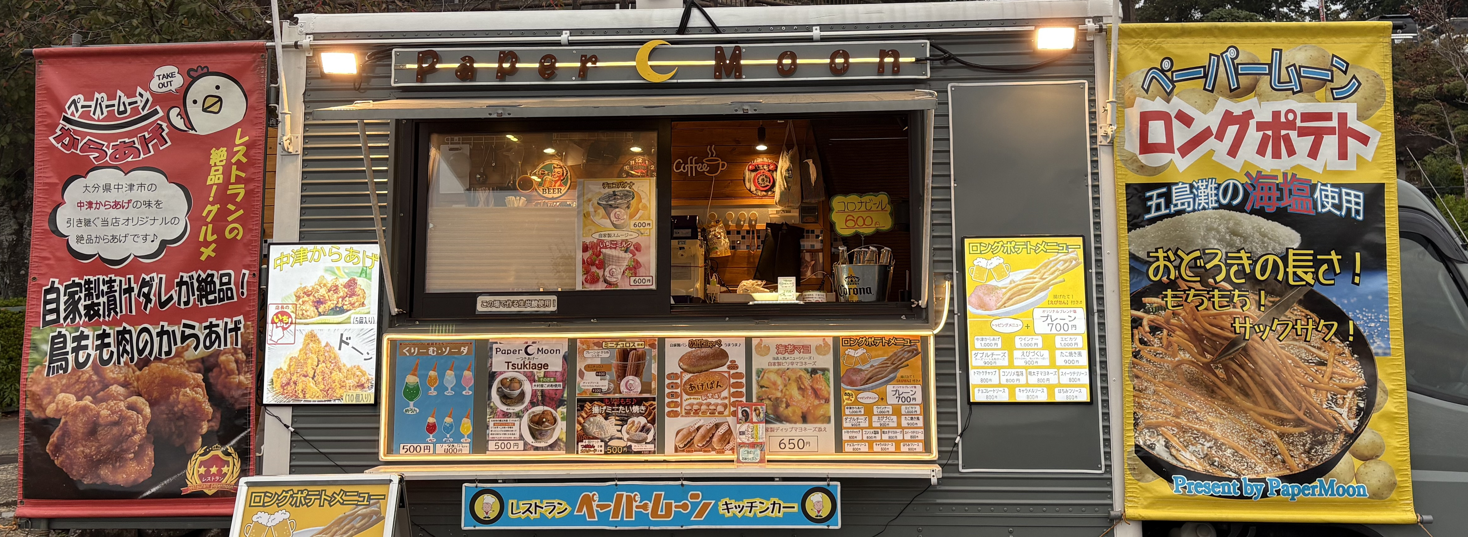 たこ焼き、ロングポテト、チュロス、串天、QQボール、ライスバーガー、かき氷、揚げたこ焼き、しゃかしゃかポテト、コロッケ、ラムネ、ワッフル